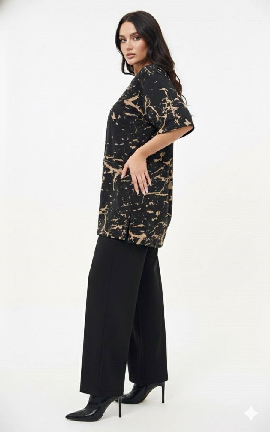 Представляем вам женский повседневный костюм от бренда NINEL – воплощение элегантности и непревзойденного комфорта. Этот комплект, состоящий из свободных брюк и футболки, создан для современной девушки, ценящей качество, стиль и универсальность. Ощутите роскошь премиальной вискозы: Костюм выполнен из высококачественной вискозы, которая дарит коже ощущение нежности и шелковистости. Этот материал обладает превосходной воздухопроницаемостью, позволяя телу дышать даже в самые жаркие дни, а также приятной прохладой и мягкостью. Вискоза не электризуется, не скатывается и сохраняет свой первозданный вид надолго, что делает этот костюм идеальным выбором для ежедневной носки. Свободный крой для абсолютной свободы движений: Дизайн костюма продуман до мелочей, чтобы обеспечить максимальный комфорт и свободу движений. Свободный крой брюк и футболки создает расслабленный, но при этом стильный силуэт, который подходит абсолютно всем. Вы будете чувствовать себя уверенно и непринужденно в любой ситуации, будь то прогулка по городу, встреча с друзьями или домашний отдых. Универсальность для любого роста: Мы позаботились о том, чтобы этот костюм стал идеальным дополнением к гардеробу каждой девушки, независимо от ее роста. Свободный крой и продуманные пропорции позволяют костюму прекрасно смотреться как на миниатюрных девушках, так и на высоких красавицах. Брюки легко адаптируются под разную длину ног, а футболка создает гармоничный образ, подчеркивая достоинства фигуры. Стиль, который говорит сам за себя: Костюм NINEL – это не просто одежда, это заявление о вашем безупречном вкусе. Минималистичный дизайн, высокое качество материалов и идеальная посадка делают его универсальным решением для создания множества образов. Сочетайте футболку с другими элементами вашего гардероба или носите костюм как единое целое – вы всегда будете выглядеть стильно и элегантно. Преимущества костюма NINEL: Премиальная вискоза: Невероятная мягкость, воздухопроницаемость и долговечность. Свободный крой: Максимальный комфорт и свобода движений. Универсальность: Идеально подходит для девушек любого роста. Стильный дизайн: Элегантность и актуальность на каждый день. Легкость в уходе: Сохраняет свой первозданный вид после многочисленных стирок.