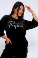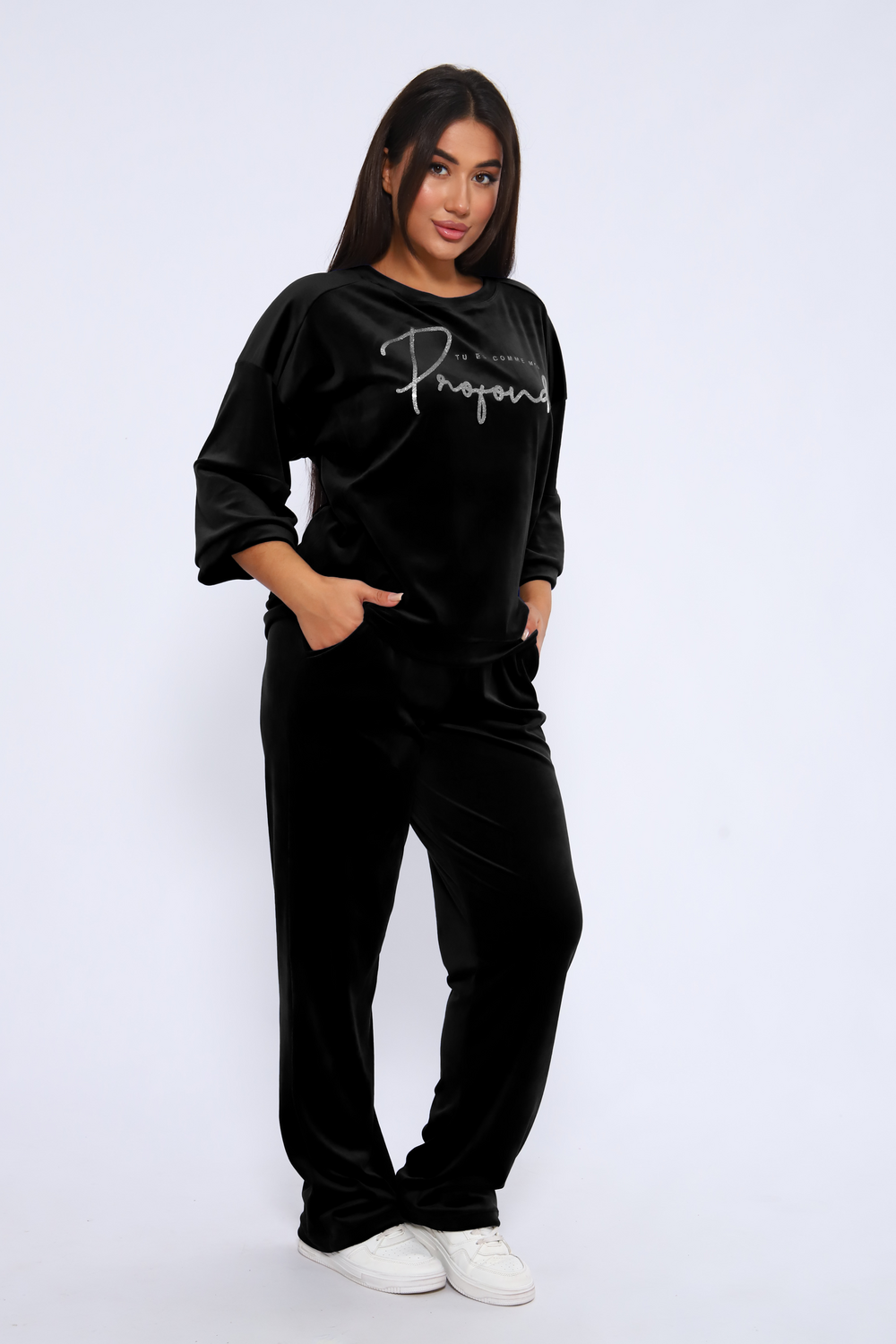 Костюм женский с широкими брюками и свободной кофтой с рукавами 3/4. Модель выполнена из премиального велюра.