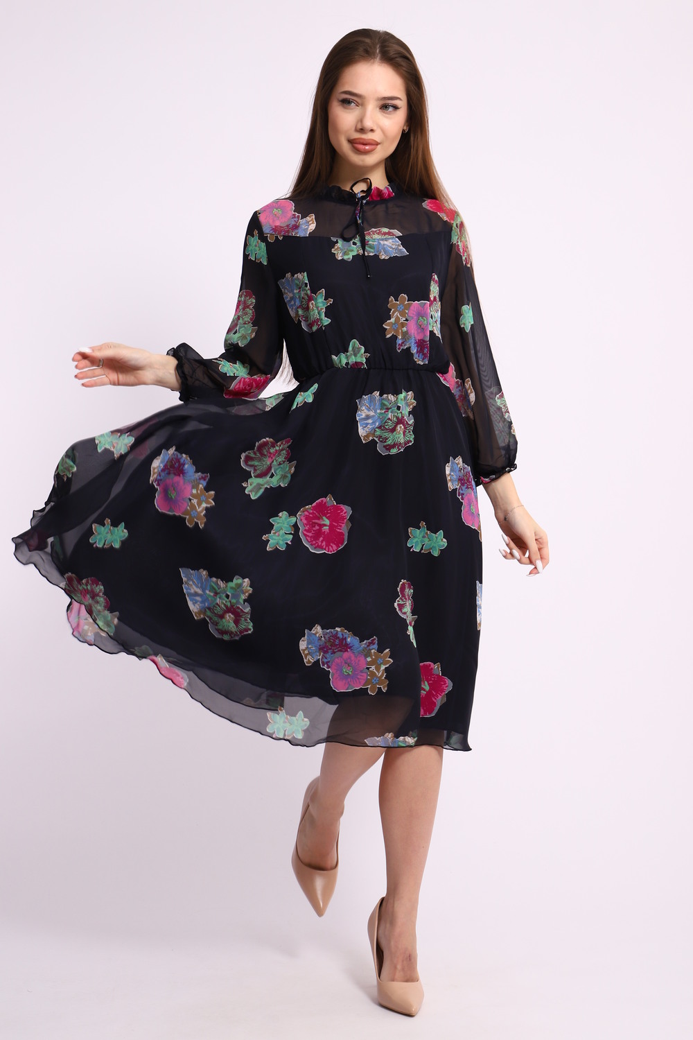 Погрузитесь в мир изящества и элегантности с нашим шифоновым женским платьем, отрезным по талии. Это платье станет вашим незаменимым союзником на любом мероприятии: от романтических ужинов до торжественных событий. Материал и Дизайн: Шифон – легкая и воздушная ткань, идеально подходящая для создания утонченных и романтичных образов. Наше платье из шифона приятно облегает тело, обеспечивая комфорт на протяжении всего дня. Отрезная талия подчеркивает женственные формы, придавая вашему силуэту изысканность и утонченность. Горловина-стойка на завязках: Особое внимание привлекает горловина-стойка с утонченными завязками, которые позволяют регулировать посадку по вашему усмотрению. Эта деталь добавляет кокетливости и изысканности, делая платье подходящим решением как для деловых мероприятий, так и для вечерних выходов. Ключевые слова и преимущества: Шифоновое платье – легкость и изящество в каждой детали. Женственное платье с отрезной талией – акцент на естественную красоту фигуры. Платье с горловиной-стойкой на завязках – адаптация под ваш стиль и комфорт. Подходит для вечеринок, офиса и повседневного ношения. Стилистические рекомендации: Стильные аксессуары и обувь на каблуке прекрасно дополнят ваш образ. Играйте с яркими серьгами или стильной сумочкой для завершения вашего наряда. Уход за изделием: Для длительного сохранения яркости и формы изделия рекомендуется деликатная стирка при низких температурах. Шифон обладает отличной устойчивостью к износу, что делает платье надежным приобретением на многие сезоны.