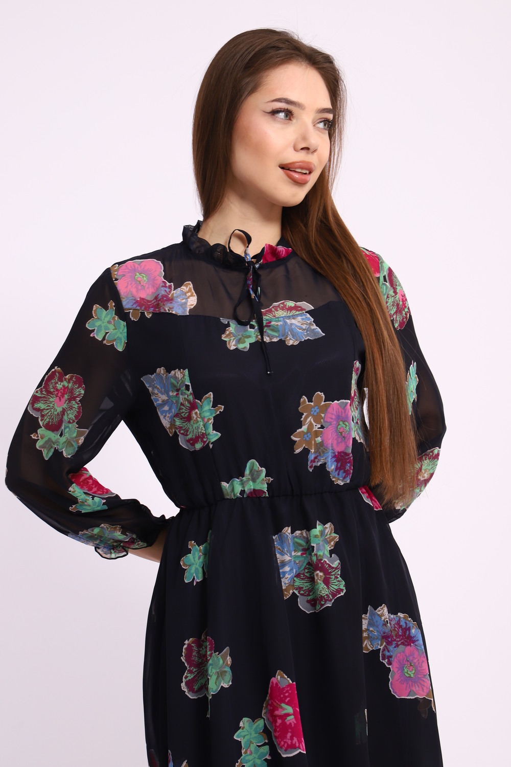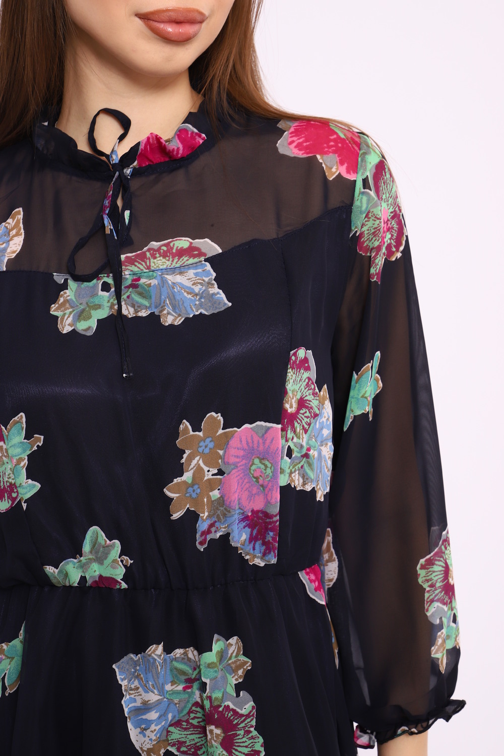 Погрузитесь в мир изящества и элегантности с нашим шифоновым женским платьем, отрезным по талии. Это платье станет вашим незаменимым союзником на любом мероприятии: от романтических ужинов до торжественных событий. Материал и Дизайн: Шифон – легкая и воздушная ткань, идеально подходящая для создания утонченных и романтичных образов. Наше платье из шифона приятно облегает тело, обеспечивая комфорт на протяжении всего дня. Отрезная талия подчеркивает женственные формы, придавая вашему силуэту изысканность и утонченность. Горловина-стойка на завязках: Особое внимание привлекает горловина-стойка с утонченными завязками, которые позволяют регулировать посадку по вашему усмотрению. Эта деталь добавляет кокетливости и изысканности, делая платье подходящим решением как для деловых мероприятий, так и для вечерних выходов. Ключевые слова и преимущества: Шифоновое платье – легкость и изящество в каждой детали. Женственное платье с отрезной талией – акцент на естественную красоту фигуры. Платье с горловиной-стойкой на завязках – адаптация под ваш стиль и комфорт. Подходит для вечеринок, офиса и повседневного ношения. Стилистические рекомендации: Стильные аксессуары и обувь на каблуке прекрасно дополнят ваш образ. Играйте с яркими серьгами или стильной сумочкой для завершения вашего наряда. Уход за изделием: Для длительного сохранения яркости и формы изделия рекомендуется деликатная стирка при низких температурах. Шифон обладает отличной устойчивостью к износу, что делает платье надежным приобретением на многие сезоны.