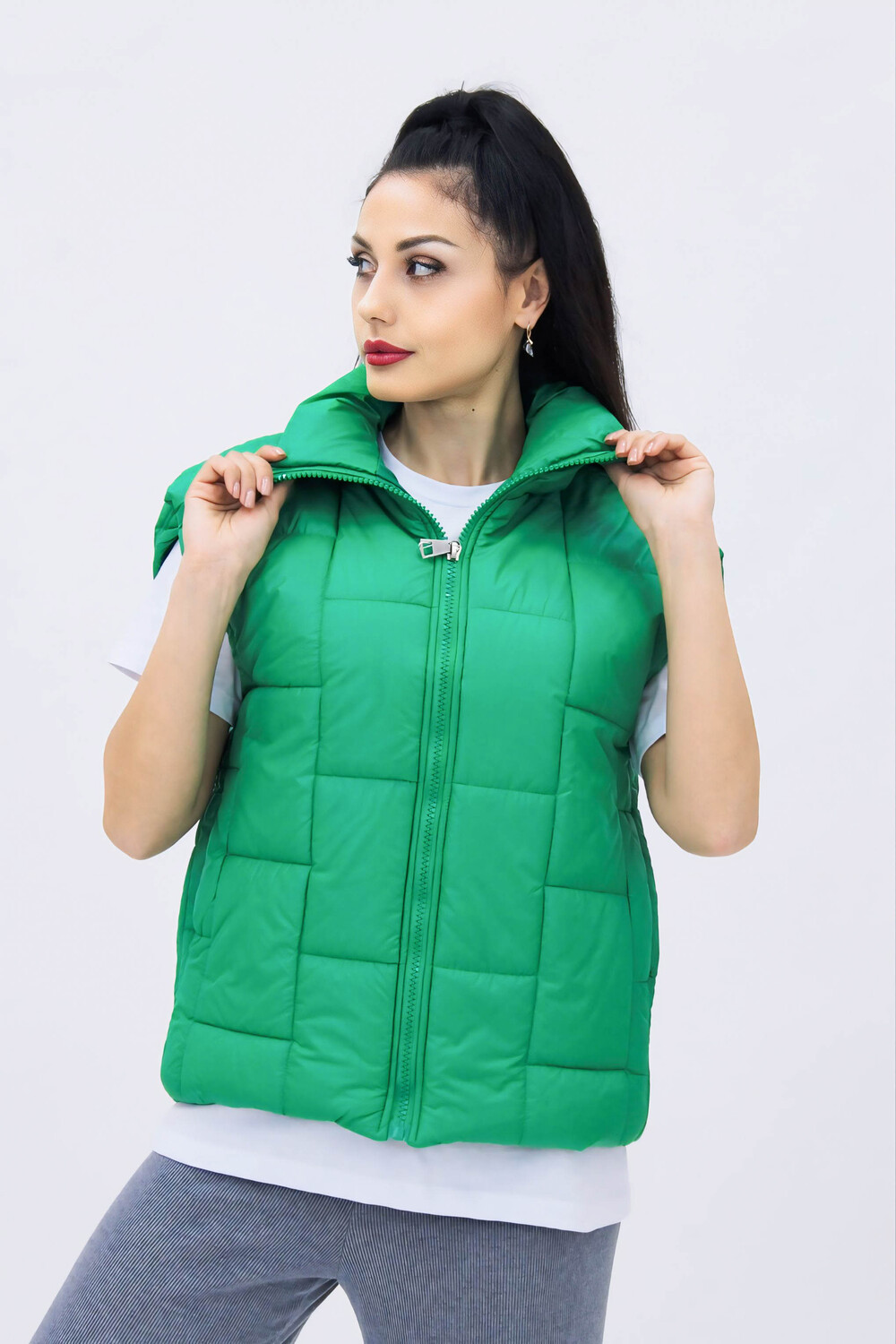 Жилетка с широкими плечами и стильной стежкой в виде квадратов идеальна для тех, кто хочет сохранить тепло и комфорт в прохладные дни и при этом выглядеть актуально и современно. Безрукавка выполнена из качественной матовой ткани с утеплителем, которые гарантируют защиту от холода. Модель имеет удобный крой, который обеспечивает свободу движений и позволяют чувствовать себя комфортно в любой ситуации. Универсальная весенняя верхняя одежда легко сочетается с любыми предметами современного гардероба, поможет создать модные, стильные образы.