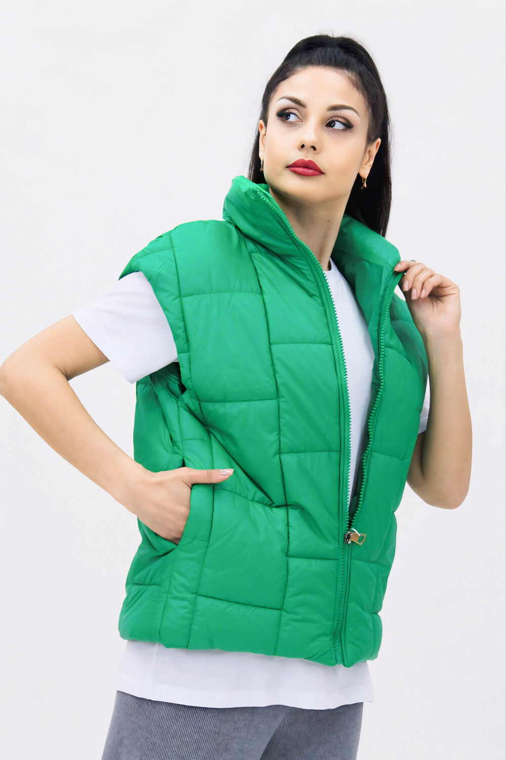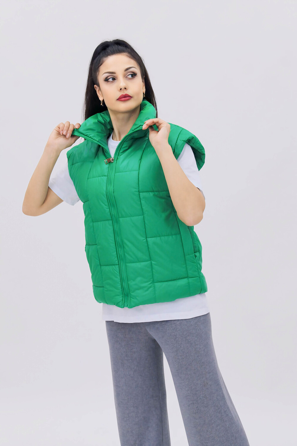 Жилетка с широкими плечами и стильной стежкой в виде квадратов идеальна для тех, кто хочет сохранить тепло и комфорт в прохладные дни и при этом выглядеть актуально и современно. Безрукавка выполнена из качественной матовой ткани с утеплителем, которые гарантируют защиту от холода. Модель имеет удобный крой, который обеспечивает свободу движений и позволяют чувствовать себя комфортно в любой ситуации. Универсальная весенняя верхняя одежда легко сочетается с любыми предметами современного гардероба, поможет создать модные, стильные образы.