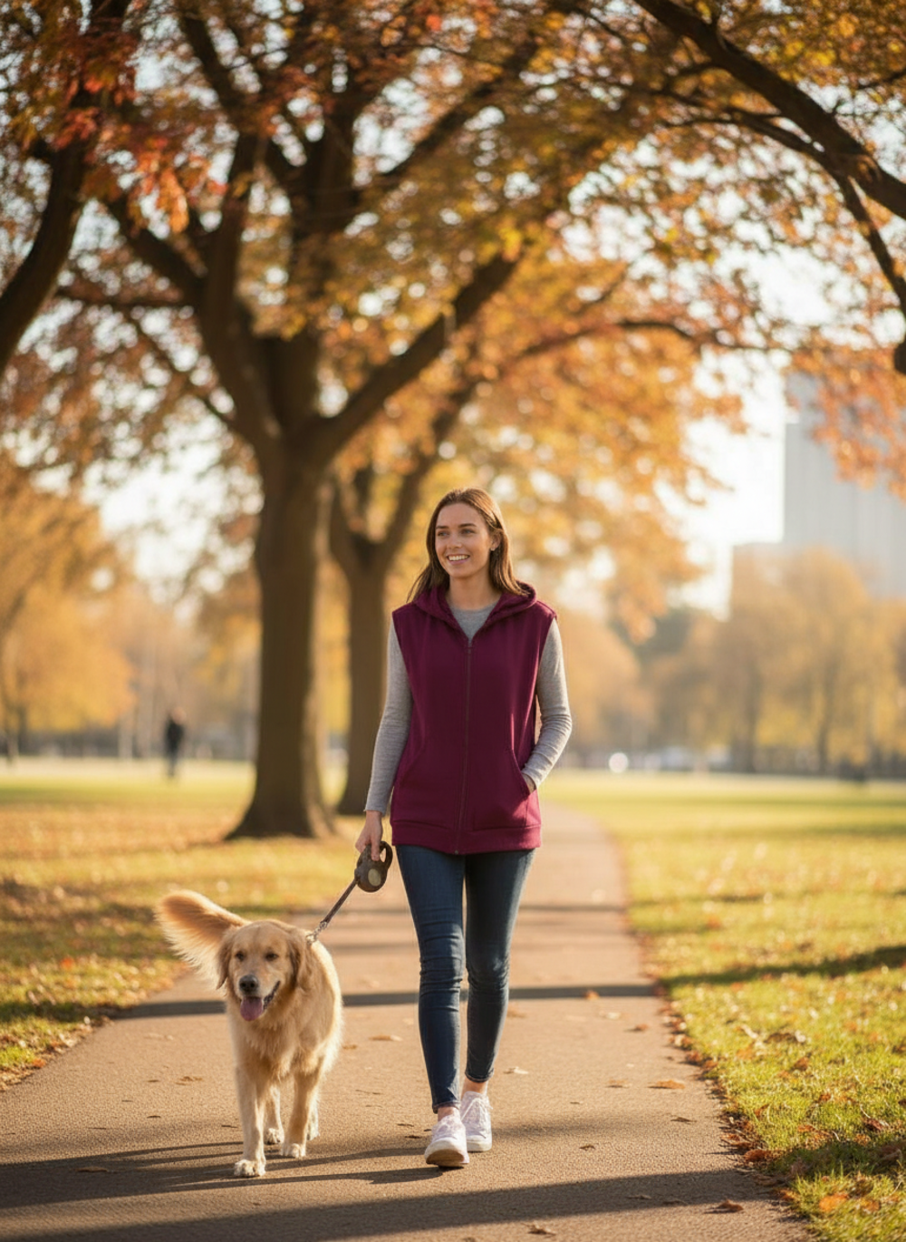 Жилетка женская из футера, утепленная. С объемным капюшоном на молнии.