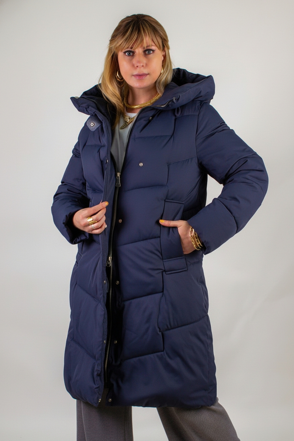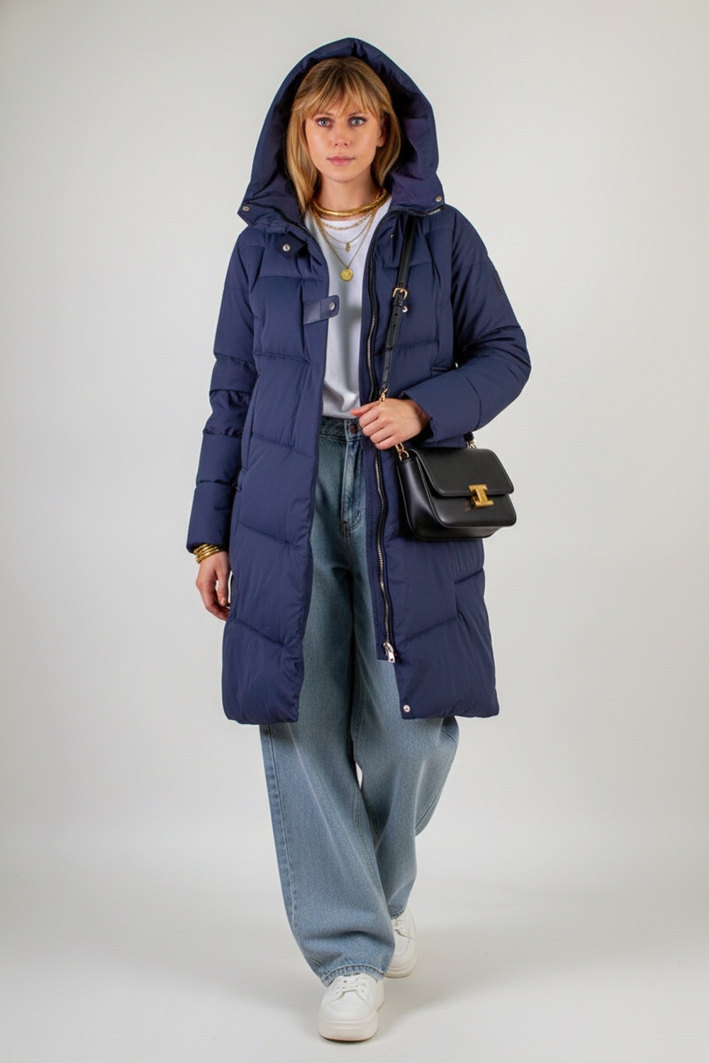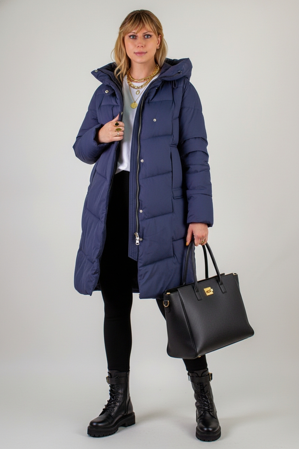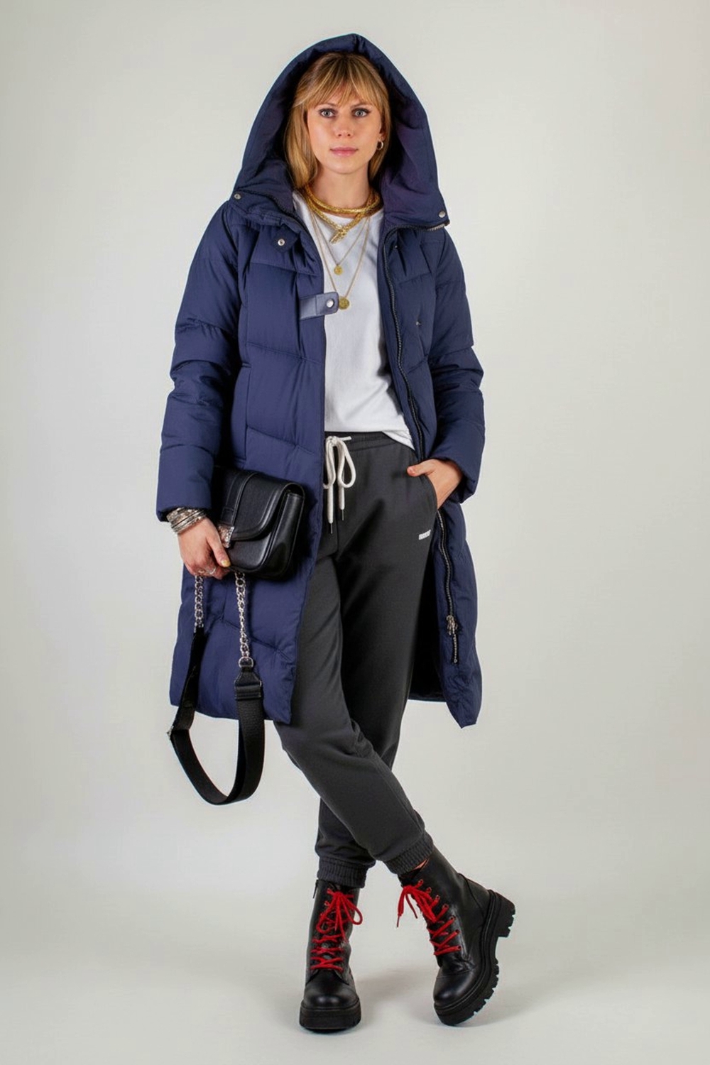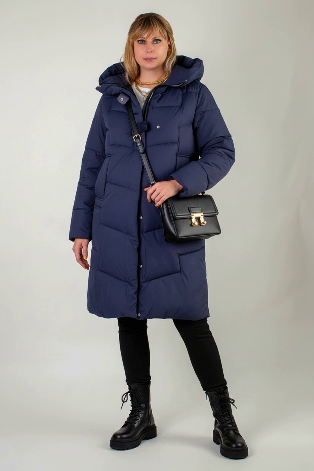 Стильная зимняя куртка арт. 28111 — идеальный выбор для тех, кто ценит современный дизайн, комфорт и качество в холодное время года. Эта куртка выполнена из плотной матовой ткани, припылённого синего цвета в оттенке индиго — цвета, который выглядит богато и стильно, легко впишется в любой городской гардероб. Модель представлена в удлинённом крое, что дополнительно защищает от холода и ветра. Куртка застегивается на двустороннюю молнию, удобную для регулировки вентиляции и свободы движений — это особенно важно при активном городском ритме, посадках в транспорт и поездках на автомобиле. Утепленная планка на кнопках дополнена стильными кожаными накладками в цвет куртки, которые придают изделию элегантный и современный вид. Глубокий теплый капюшон с воротником-стойкой и удобными фиксаторами защитит от непогоды, при этом оставаясь стильным элементом образа. Крой куртки современный и актуальный, подчеркивающий фигуру, но не стесняющий движений. Особое внимание уделено утеплителю: качественный файбер равномерно распределен благодаря ассиметричной строчке простеганной конструкции. Это исключает скопления наполнителя в отдельных участках и гарантирует постоянное тепло по всей поверхности куртки. Материал верхнего слоя — плотная матовая ткань, которая не только отлично защищает от ветра и влаги, но и выглядит дорого и современно. Также предусмотрены практичные трикотажные манжеты на рукавах, которые предотвращают проникновение прохлады. Функциональность модели дополняется удобными карманами: два боковых кармана для рук и внутренний карман для важных мелочей. Куртка арт. 28111 — это идеальное сочетание высокой функциональности, качественного пошива и строго продуманного дизайна, созданное для современных и активных людей, которые хотят быть уверены в тепле и комфорте в любую погоду. На модели так же представлено: Женская туника арт. 1991