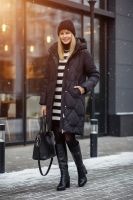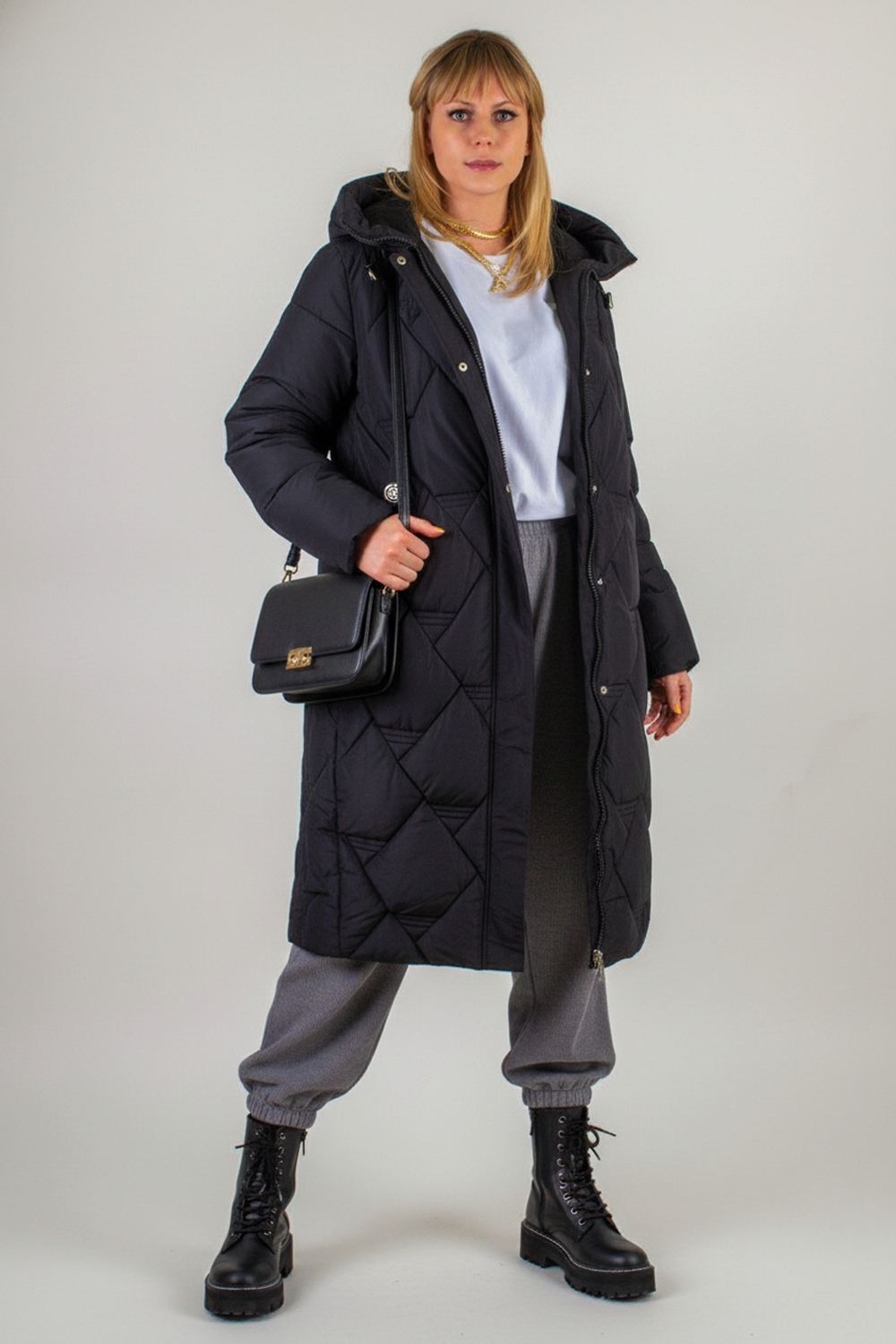 Стильная зимняя куртка арт. 2886 — это идеальный выбор для тех, кто ценит комфорт, тепло и современный дизайн в холодное время года. Эта куртка на молнии выполнена с утепленной планкой на кнопках, что обеспечивает дополнительную защиту от ветра и холода. Теплый, простеганный материал с актуальной тройной ромбообразной строчкой равномерно распределяет наполнитель файбер по всей поверхности, предотвращая его скапливание и обеспечивая стабильный уровень тепла. Дизайн куртки продуман до мелочей: два боковых кармана оснащены декоративными элементами и резинкой с фиксаторами, что добавляет стиль и функциональность. Трикотажные манжеты на рукавах плотно прилегают, не пропуская холодный воздух. Внутренний карман поможет сохранить важные вещи под рукой. Глубокий и теплый капюшон с удобными фиксаторами и воротником-стойкой надежно защитит от непогоды. Куртка выполнена в двух универсальных цветах — черном и коричневом, которые легко сочетаются с любой обувью и аксессуарами. Мягкая и теплая ткань с качественной фурнитурой делает изделие долговечным и приятным на ощупь. Продуманная удлиненная длина и двусторонняя молния придают куртке универсальность и удобство в городской жизни. Легко регулируйте застежку, чтобы чувствовать себя комфортно в транспорте или при сидячем положении. Курточная ткань с ветро- и влагозащитой надежно охраняет от непогоды, а цвет подкладки гармонично сочетается с основным цветом изделия, подчёркивая высокое качество пошива. Такая куртка отлично подойдет для зимы, евро зимы и демисезонного периода. Она сохраняет тепло благодаря продуманному наполнителю и качественной простёжке, обеспечивая комфорт в любых условиях. Стильный актуальный крой подчеркивает современный городской стиль, а функциональность делает этот выбор максимально удобным для повседневной носки. На модели так же представлено: Женская туника арт. 1991