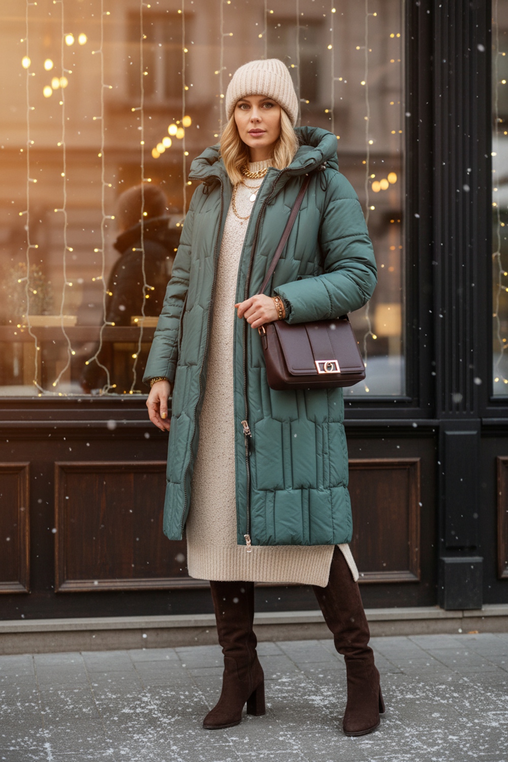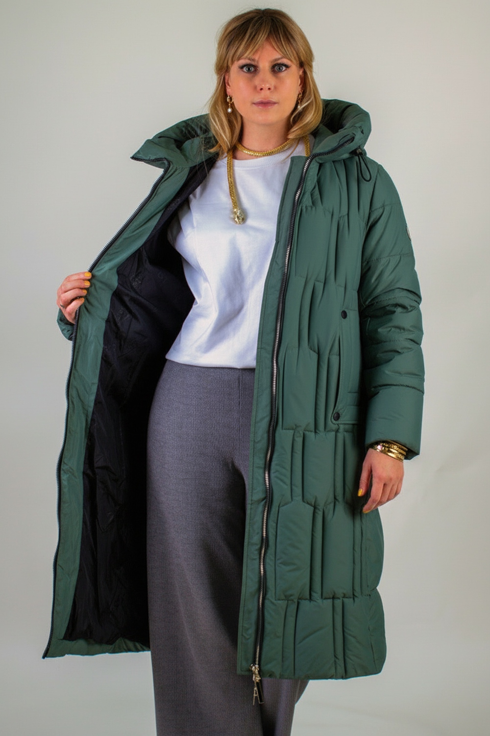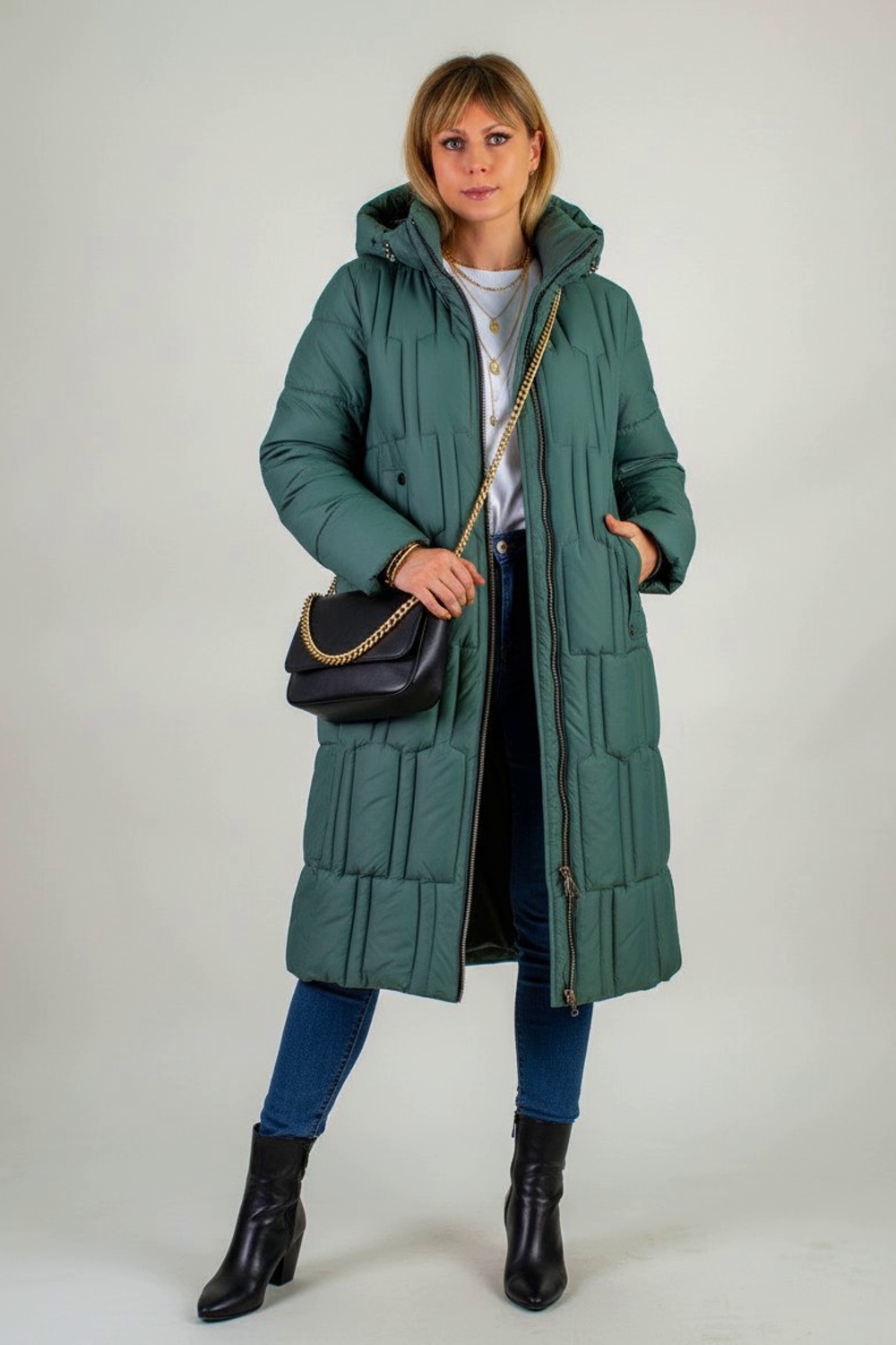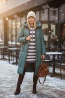 Стильная зимняя куртка арт. 28126 – идеальный выбор для тех, кто ценит комфорт, свободу движений и безупречный внешний вид в холодное время года. Эта куртка на молнии с внутренней планкой отличается современным удлинённым кроем и продуманной конструкцией, обеспечивающей максимальную защиту от ветра и холода, при этом не сковывая движений при посадке в автомобиль или перемещении по городу. Ключевые особенности модели: • Утеплитель «файбер» – лёгкий и тёплый наполнитель, равномерно распределённый благодаря асимметричной супермодной строчке. • Глубокий капюшон с фиксирующими резинками и устойчивым воротником-стойкой защитит от ветра и непогоды, сохраняя тепло вокруг шеи и лица. • Двухсторонняя молния легко регулируется, позволяя при необходимости раскрыть низ куртки для удобства сидения и активных движений. • Два вместительных боковых кармана на кнопках и скрытый внутренний карман для мелочей. На рукавах – трикотажные манжеты, предохраняющие от проникновения холодного воздуха. • Эффектные декоративные элементы на кнопках вокруг карманов подчёркивают актуальность модели и создают деликатный стильный акцент. Материал верха – плотная матовая ткань, отталкивающая грязь, шерсть и пыль. Цветовые варианты: трендовый бежевый, классический чёрный и насыщенная бирюза. Куртка доступна в расширенной размерной линейке больших размеров, что делает её универсальным решением для любой фигуры. Преимущества покупки: – Высококачественный пошив и фурнитура отличного качества; – Лёгкость и мягкость даже при внешней плотности ткани; – Оптимальная защита в зимний и «евро» зима сезоны; – Модный асимметричный дизайн, подчёркнутый актуальной строчкой. Выбирая зимнюю куртку арт. 28126, вы получаете стильную и функциональную вещь, которая согреет в самые морозные дни и при этом станет идеальным дополнением городского образа. На модели так же представлено: Женская туника арт. 1991