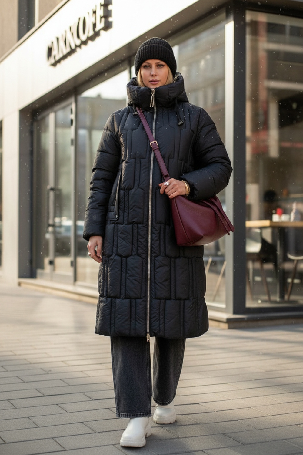 Стильная зимняя куртка арт. 28126 – идеальный выбор для тех, кто ценит комфорт, свободу движений и безупречный внешний вид в холодное время года. Эта куртка на молнии с внутренней планкой отличается современным удлинённым кроем и продуманной конструкцией, обеспечивающей максимальную защиту от ветра и холода, при этом не сковывая движений при посадке в автомобиль или перемещении по городу. Ключевые особенности модели: • Утеплитель «файбер» – лёгкий и тёплый наполнитель, равномерно распределённый благодаря асимметричной супермодной строчке. • Глубокий капюшон с фиксирующими резинками и устойчивым воротником-стойкой защитит от ветра и непогоды, сохраняя тепло вокруг шеи и лица. • Двухсторонняя молния легко регулируется, позволяя при необходимости раскрыть низ куртки для удобства сидения и активных движений. • Два вместительных боковых кармана на кнопках и скрытый внутренний карман для мелочей. На рукавах – трикотажные манжеты, предохраняющие от проникновения холодного воздуха. • Эффектные декоративные элементы на кнопках вокруг карманов подчёркивают актуальность модели и создают деликатный стильный акцент. Материал верха – плотная матовая ткань, отталкивающая грязь, шерсть и пыль. Цветовые варианты: трендовый бежевый, классический чёрный и насыщенная бирюза. Куртка доступна в расширенной размерной линейке больших размеров, что делает её универсальным решением для любой фигуры. Преимущества покупки: – Высококачественный пошив и фурнитура отличного качества; – Лёгкость и мягкость даже при внешней плотности ткани; – Оптимальная защита в зимний и «евро» зима сезоны; – Модный асимметричный дизайн, подчёркнутый актуальной строчкой. Выбирая зимнюю куртку арт. 28126, вы получаете стильную и функциональную вещь, которая согреет в самые морозные дни и при этом станет идеальным дополнением городского образа. На модели так же представлено: Женская туника арт. 1991