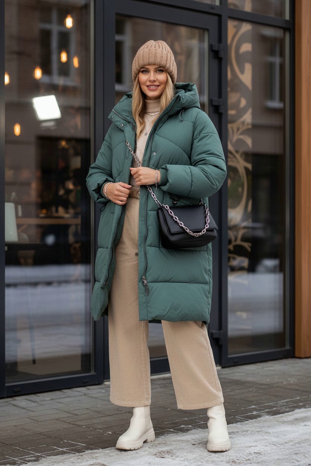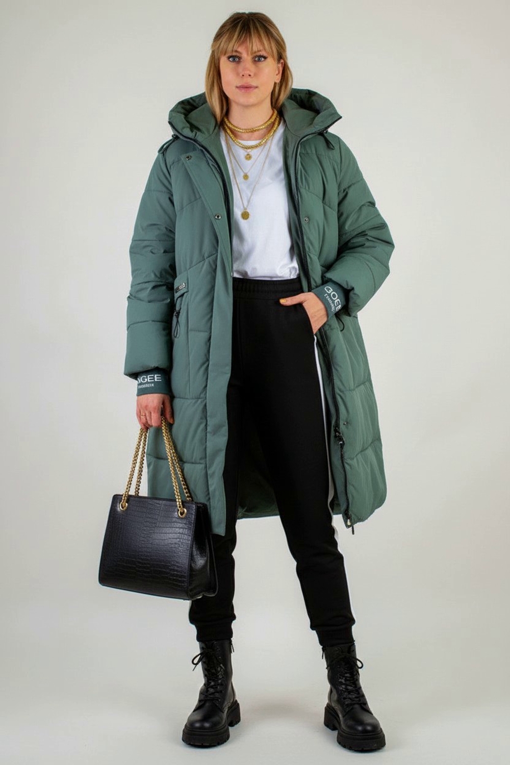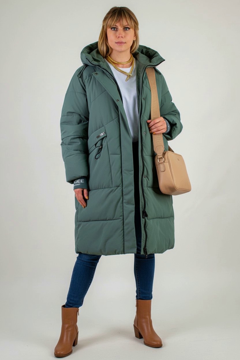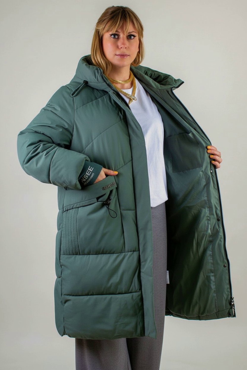 Стильная зимняя куртка больших размеров арт. 8837 – ваш надёжный щит от холода и ветра! Эта модель сочетает в себе модный удлинённый силуэт, безупречное качество пошива и продуманную функциональность, чтобы вы чувствовали себя комфортно и выглядели стильно весь сезон. Ключевые преимущества: • Застёжка-молния с утеплённой ветрозащитной планкой на кнопках сохраняет тепло и защищает от сквозняков. Двухсторонний бегунок позволяет регулировать посадку при ходьбе по городу или при посадке в авто и транспорт • Наполнитель «файбер» – лёгкий, гипоаллергенный утеплитель, простёганный классической (не ультрастеп) строчкой. Равномерное распределение волокон исключает образование холодных зон и гарантирует долговечность формы. • Два вместительных накладных кармана украшены качественной фурнитурой с деликатным блеском страз – ваше пространство для мелочей и рук всегда под рукой. • Трикотажные манжеты плотно облегают запястье и надёжно блокируют поступление холодного воздуха внутрь рукава. • Глубокий капюшон с надёжными фиксаторами и высокий воротник-стойка сохраняют тепло в области шеи и головы даже в сильный ветер. • Внутренний карман на молнии – безопасное место для телефона, документов и ключей. Материал верха – плотная матовая ткань с грязе- и влагостойкой пропиткой. Она отталкивает пыль, капли воды и ворс, не накапливает статического электричества и легко очищается. Цвет – яркий и актуальный бирюзовый, который освежит образ и выгодно выделит вас на фоне зимнего города. Модель арт. 8837 изготовлена в расширенной размерной линейке, учитывающей особенности фигур «plus size». Удлинённая линия силуэта визуально вытягивает пропорции и надёжно защищает бёдра от мороза. Лёгкая и мягкая на ощупь, эта куртка подарит вам свободу движений и комфорт даже при очень низких температурах (до –25 °C при правильно подобранном базовом слое). Эта зимняя куртка – идеальное сочетание функциональности и трендового дизайна: она станет базовой частью вашего гардероба и легко впишется как в повседневный, так и в более нарядный образ. Выбирайте качество, тепло и стиль вместе с моделью арт. 8837 На модели так же представлено: Женская туника арт. 1991