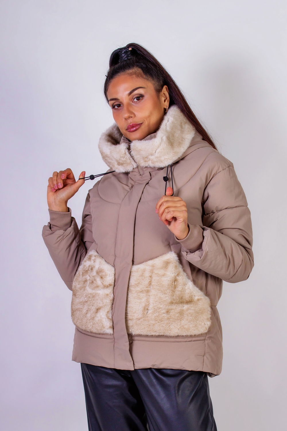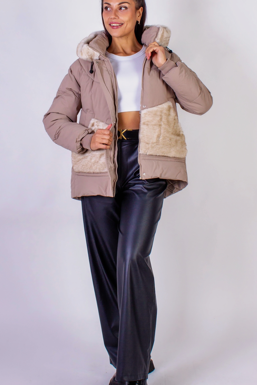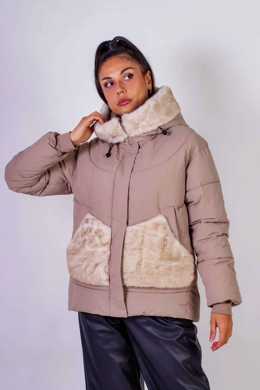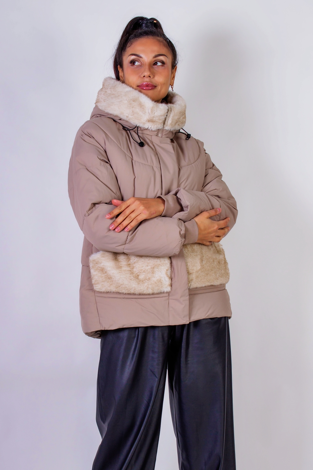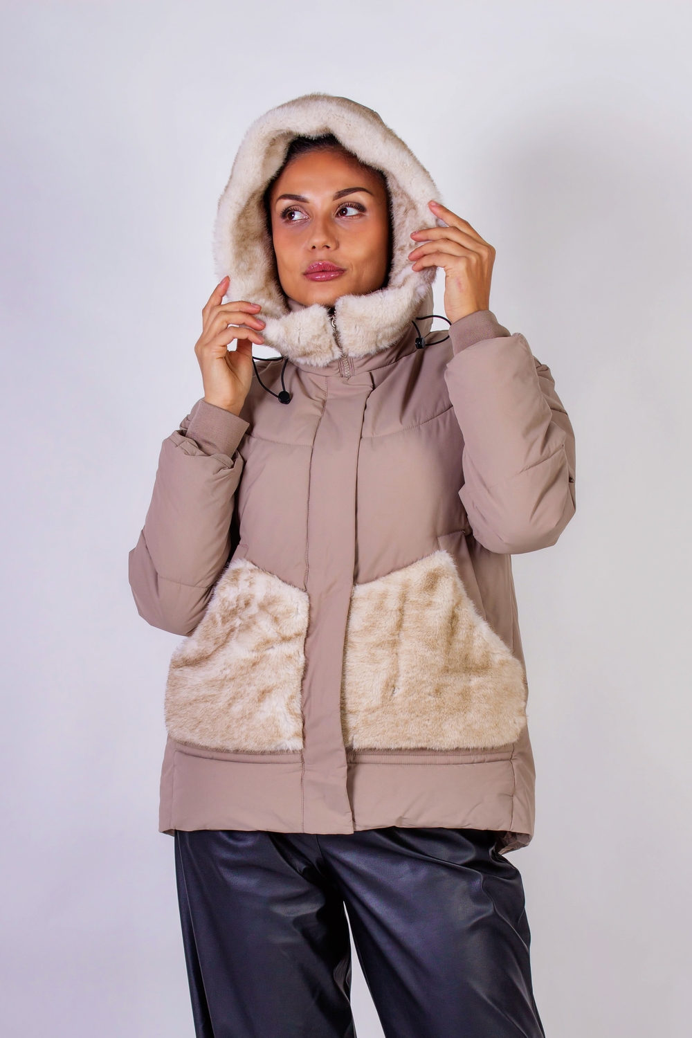 Стильная зимняя куртка с меховой отделкой, которая станет идеальным элементом вашего гардероба в холодное время года. Эта куртка выполнена с использованием качественного искусственного меха, который похож на натуральный, нежный и приятный на ощупь, подарит вам комфорт и тепло. Средняя длина куртки придаёт образу элегантность и современность. Она оснащена капюшоном, который надежно защитит вас от ветра, а также двумя боковыми карманами на кнопках, дизайн и отделка которых гармонично сочетаются с отделкой капюшона. Это не только функциональные элементы, но и продуманные детали, подчеркивающие стиль куртки. Крой данной модели ориентирован на актуальные тренды: куртка не обтягивает фигуру, что позволяет свободно двигаться и чувствовать себя комфортно в любой ситуации. Молния, проходящая по всей длине, обеспечит простоту в использовании, а планка на кнопках дополнительно защитит от холода и ветра. Простеганная конструкция гарантирует равномерное распределение утеплителя, исключая возможность его скапливания в отдельных участках. Эта технология делает куртку более долговечной и практичной, сохраняя её первоначальные свойства даже после многократного использования. Плотная матовая ткань сохраняет свою форму и позволит вам выглядеть привлекательно вне зависимости от обстоятельств. Эта куртка станет превосходным выбором для городских прогулок, поездок на природу или встреч с друзьями. Она легко комбинируется с различными элементами гардероба: от уютных свитеров до стильных ботинок. Не упустите возможность добавить эту универсальную и современную куртку с меховой отделкой в свой гардероб, и наслаждайтесь комфортом и стилем в любые холодные дни Рост модели на фото: 175 см, размер: 46-48. На ней представлена куртка в размере 48