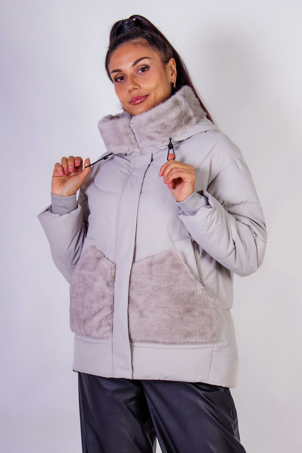 Стильная зимняя куртка с меховой отделкой, которая станет идеальным элементом вашего гардероба в холодное время года. Эта куртка выполнена с использованием качественного искусственного меха, который похож на натуральный, нежный и приятный на ощупь, подарит вам комфорт и тепло. Средняя длина куртки придаёт образу элегантность и современность. Она оснащена капюшоном, который надежно защитит вас от ветра, а также двумя боковыми карманами на кнопках, дизайн и отделка которых гармонично сочетаются с отделкой капюшона. Это не только функциональные элементы, но и продуманные детали, подчеркивающие стиль куртки. Крой данной модели ориентирован на актуальные тренды: куртка не обтягивает фигуру, что позволяет свободно двигаться и чувствовать себя комфортно в любой ситуации. Молния, проходящая по всей длине, обеспечит простоту в использовании, а планка на кнопках дополнительно защитит от холода и ветра. Простеганная конструкция гарантирует равномерное распределение утеплителя, исключая возможность его скапливания в отдельных участках. Эта технология делает куртку более долговечной и практичной, сохраняя её первоначальные свойства даже после многократного использования. Плотная матовая ткань сохраняет свою форму и позволит вам выглядеть привлекательно вне зависимости от обстоятельств. Эта куртка станет превосходным выбором для городских прогулок, поездок на природу или встреч с друзьями. Она легко комбинируется с различными элементами гардероба: от уютных свитеров до стильных ботинок. Не упустите возможность добавить эту универсальную и современную куртку с меховой отделкой в свой гардероб, и наслаждайтесь комфортом и стилем в любые холодные дни Рост модели на фото: 175 см, размер: 46-48. На ней представлена куртка в размере 48