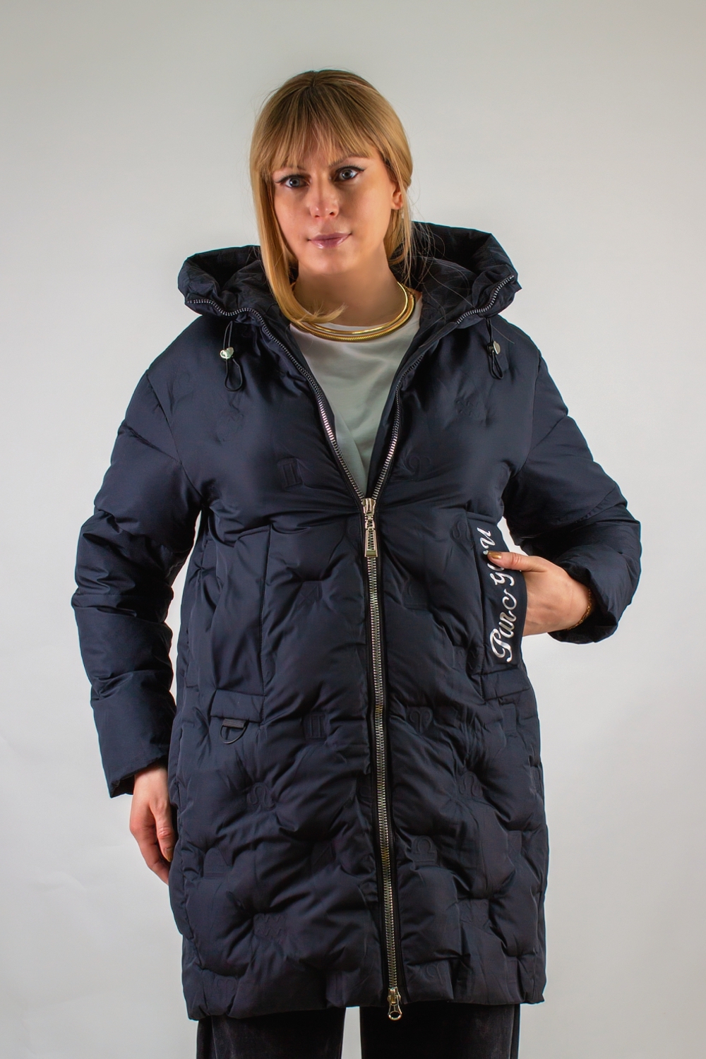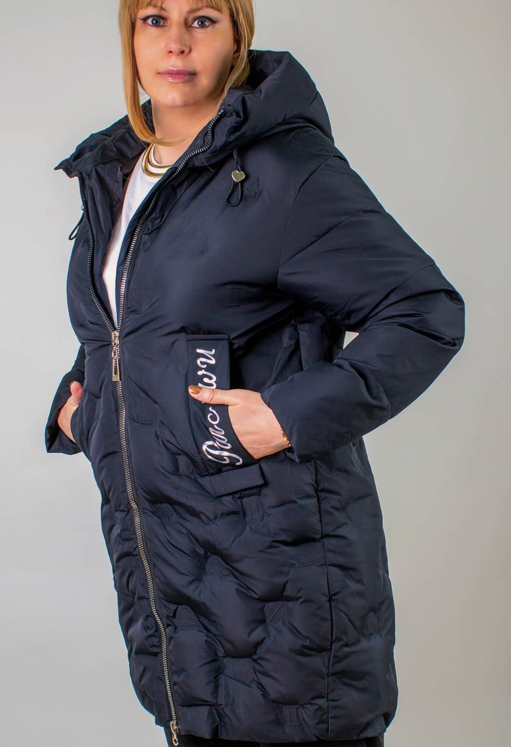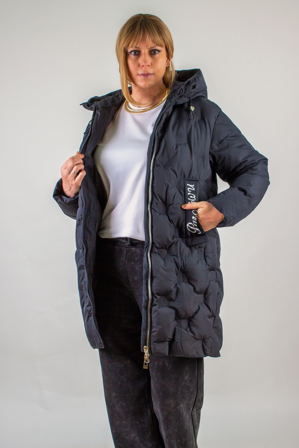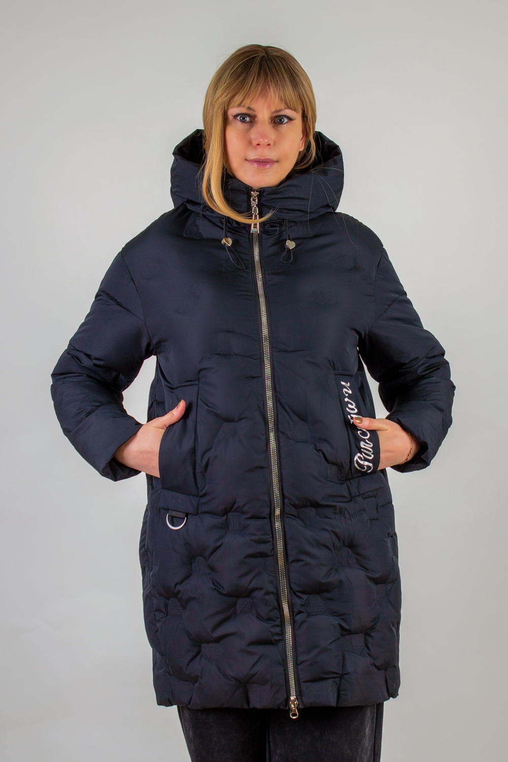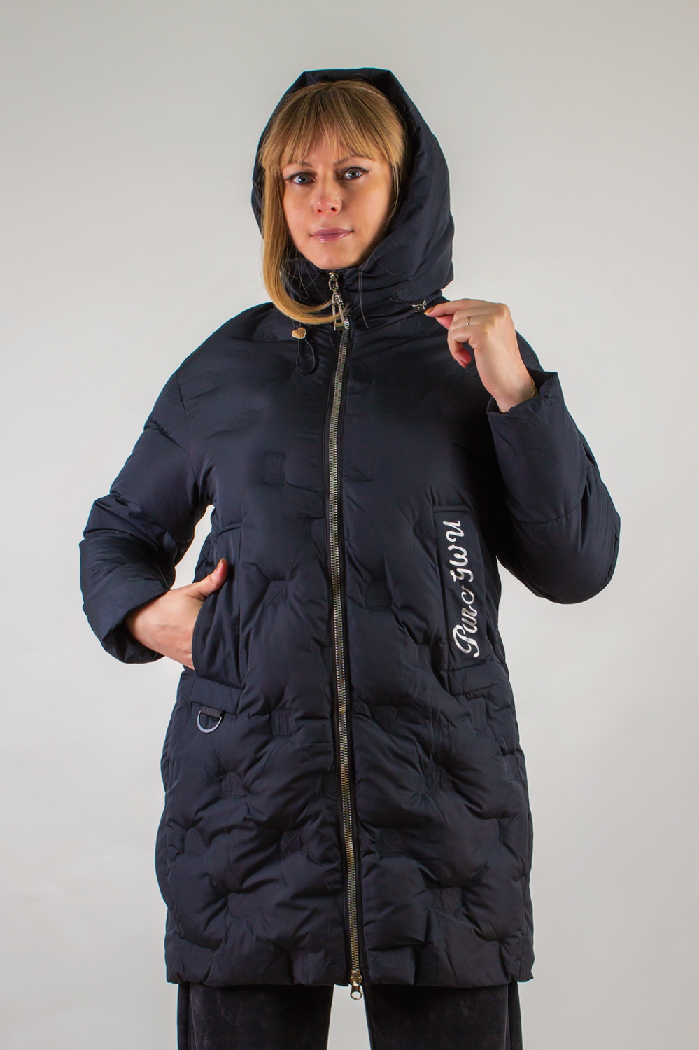 Зимняя куртка с капюшоном арт. 611 – это идеальное сочетание продуманного кроя, современных технологий утепления и оригинального дизайнерского решения. Выполненная в удлинённом силуэте, куртка обеспечивает максимальную защиту от ветра и холода: длина ниже бёдер позволяет сохранить тепло не только в области корпуса, но и дополнительно прикрывает верх ног. Капюшон с высоким воротником-стойкой на фиксаторах легко подстроить под любую погоду. Для удобства и комфорта в ежедневном использовании модель оснащена двухзамковой молнией: вы сможете приподнять замок снизу, не расстегивая молнию полностью, чтобы комфортно сесть или зафиксировать пиджак под рюкзак. Инновационная стёжка «ультрастеп» выполнена в виде знаков зодиака, уложенных в аккуратные ромбовидные ячейки – такой декоративный приём не только украшает изделие, но и гарантирует равномерное распределение утеплителя по всей поверхности, сохраняет объём и тепловые свойства после стирок. Два функциональных боковых кармана надёжно защитят ваши руки от мороза и позволят хранить мелочи в безопасности. Один из клапанов декорирован стильной надписью, подчёркивающими модный характер изделия. Эластичные трикотажные рукава на манжетах препятствуют попаданию снега внутрь и создают эффект «утеплённого рукава», дополнительно удерживая тепло. Внутренний карман – практичное решение для хранения телефона, документов или кошелька. Куртка представлена в двух базовых цветах – глубоком чёрном и элегантном сером – и легко впишется в любой образ: от классического офисного до спортивно-повседневного. Арт. 611 разработан с учётом особенностей современных мегаполисов и активного образа жизни. Благодаря качественным материалам верха, износостойкой фурнитуре и продуманной конструкции вы получите не только стильную вещь, но и надёжного спутника на весь зимний сезон.