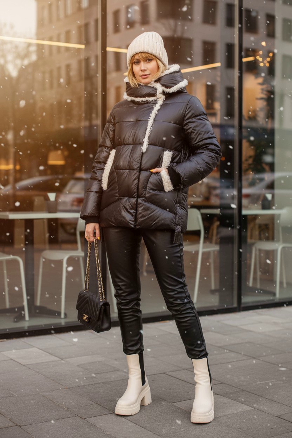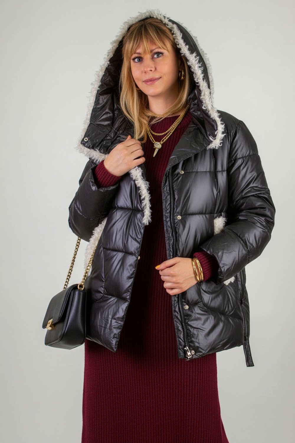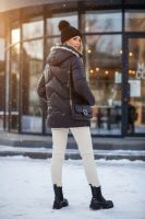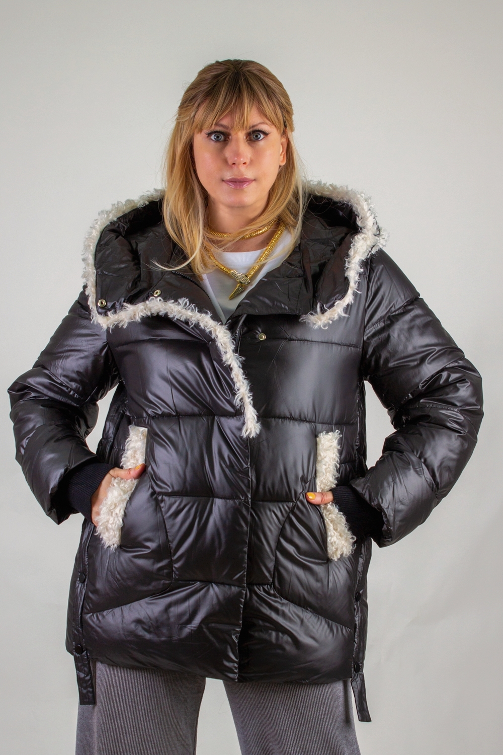Стильная зимняя куртка арт. 2813 – это идеальный выбор для тех, кто ценит продуманный дизайн, высокую функциональность и комфорт в холодное время года. Модель разработана в современном свободном крое, который не ограничивает движений и подходит для любого типа фигуры. Средняя длина куртки надёжно защищает бедра от ветра, а лёгкая невесомость изделия позволяет носить её даже в активном ритме городской жизни. Основной материал – качественная глянцевая ткань с водо- и грязеотталкивающей пропиткой. Она не впитывает влагу, пыль и шерсть домашних животных, легко очищается и сохраняет безупречный лоск на протяжении всего сезона. Застёжка-молния дополнена утеплённой ветрозащитной планкой на кнопках, препятствующей проникновению холодного воздуха. Наполнитель «файбер» – высококачественный утеплитель, обладающий лёгкостью, упругостью и гипоаллергенными свойствами. Простёганная классическим способом (не ультрастеп) конструкция гарантирует равномерное распределение волокон по всему объёму куртки, исключая образование холодных зон. Особое украшение куртки – два боковых кармана на кнопке, обрамлённые искусственным мехом «барашек» нежно-белого оттенка. Тот же ворс используется на капюшоне и верхней части воротника до линии талии, придавая образу утончённость и лёгкую роскошь. Декоративная планка с кнопками по бокам визуально стройнит силуэт, при этом куртка остаётся свободной и не сковывает движений. Удобные детали: трикотажные манжеты на рукавах надёжно блокируют холод, а глубокий капюшон с кнопочной фиксацией легко трансформируется в высокий воротник-стойку. Внутренний карман на молнии сохранит ваши документы и гаджеты в безопасности. Черный универсальный цвет делает эту модель особенно практичной: она идеально гармонирует с любым гардеробом – от джинсов и спортивных брюк до классических платьев. Куртка art. 2813 предназначена для суровых зим или «евро-зимы» с температурами до –20 °C (при грамотном подборе базового слоя). Преимущества: – современный комфортный крой; – лёгкость и мягкость при сохранении тепла; – качественные швы и фурнитура; – эксклюзивные декоративные элементы; – практичная длина и защищённость от непогоды. Выбирая куртку арт. 2813, вы получаете стильное, тёплое и функциональное изделие, которое станет украшением вашего зимнего гардероба и подарит чувство уюта даже в морозные дни.