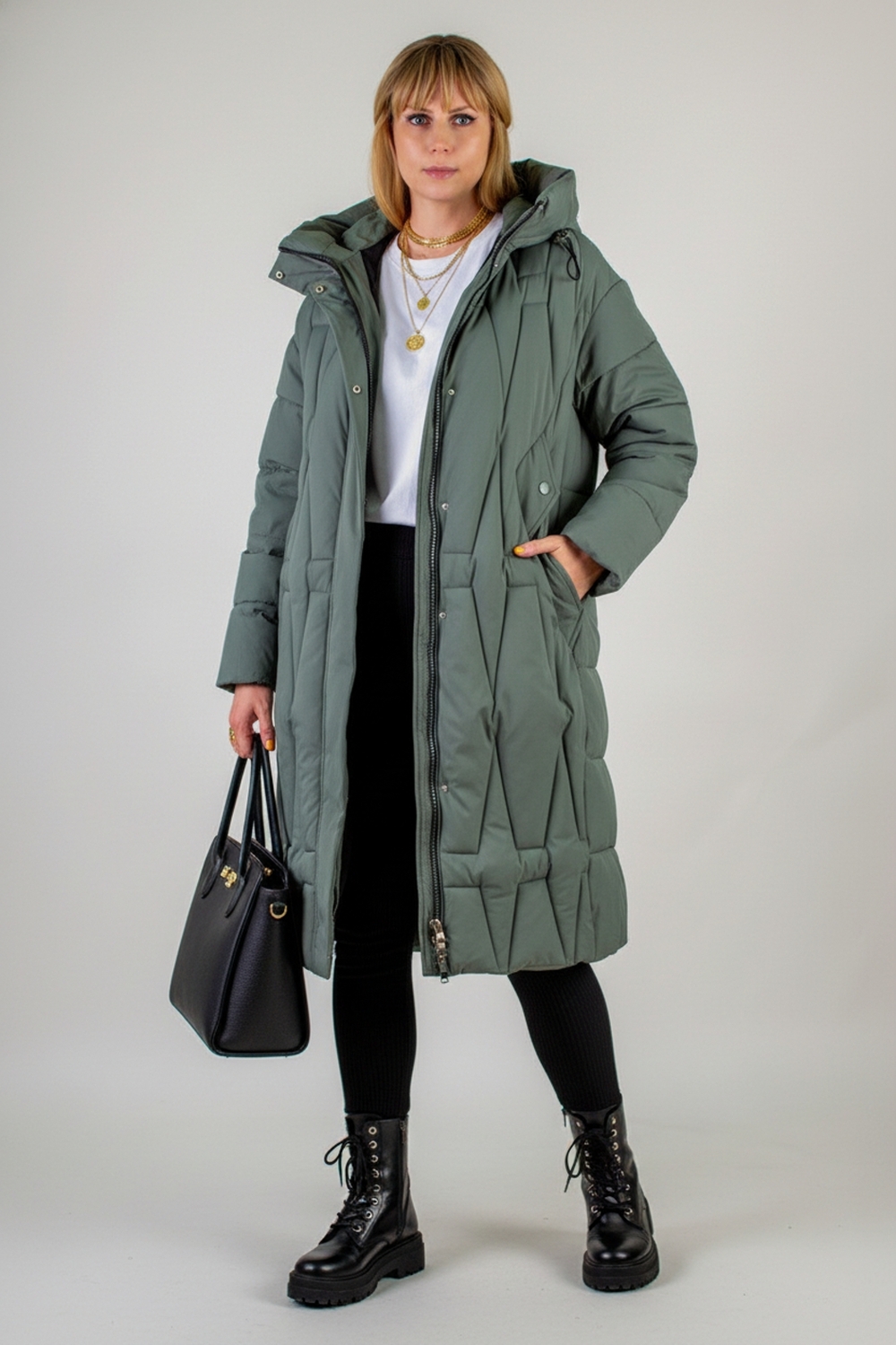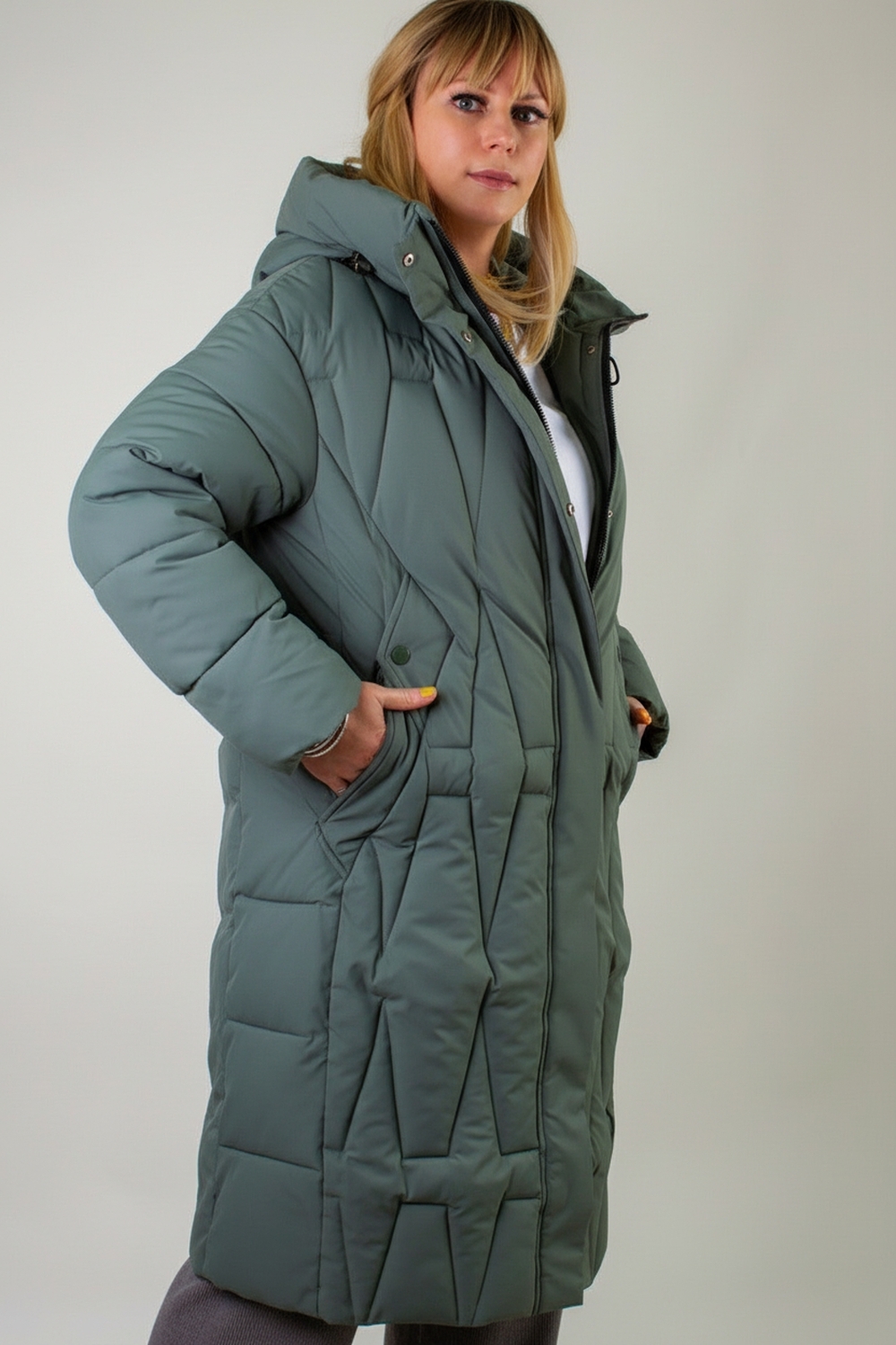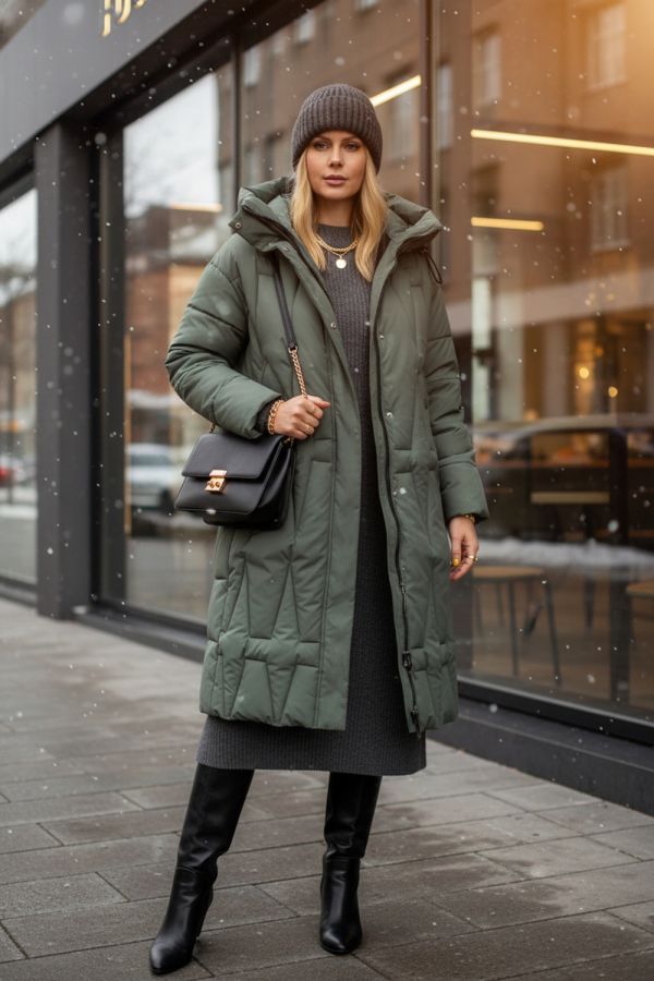 Зимняя куртка удлинённого кроя арт. 28117 с высоким воротником-стойкой и двусторонней молнией — это идеальное сочетание продуманного дизайна, максимально комфортной посадки и высоких технических характеристик, которые позволят вам с уверенностью встречать морозные дни. Модель ниже колен свободного силуэта незаметно сглаживает особенности фигуры, не ограничивая в движениях и обеспечивая непревзойдённый уют. Матовая ткань высокого качества отличается повышенной износостойкостью и стойкостью к влаге, сохраняя безупречный внешний вид при активном режиме носки. Утеплитель «файбер» — лёгкое синтетическое волокно нового поколения — сохраняет тепло, не впитывает влагу и быстро восстанавливает объём после сжатия. Куртка простёгана актуальным ромбовидным стежком, который обеспечивает равномерное распределение утеплителя и исключает образование холодных зон. Эластичные манжеты на рукавах надёжно удерживают тепло и не позволяют ветру проникать внутрь. Центральная двусторонняя молния легко регулируется сверху и снизу и дополнительно закрывается под ветрозащитную планку на кнопках, а глубокий тёплый капюшон с регулировкой объёма фиксируется удобными стяжками. Практичные детали создают дополнительный комфорт: два крупных асимметрично расположенных кармана на кнопках быстро становятся любимым местом для тёплых перчаток или мелочей, а потайной внутренний карман хранит документы и ценные вещи под надёжной защитой. Фурнитура высшего качества гарантирует долгую службу всех застёжек, а элегантная монохромная подкладка в тон ткани создаёт ощущение цельности и продуманности образа. Современный, актуальный крой позволяет сочетать эту куртку с классическими сапогами, утеплёнными ботинками или кроссовками на толстой подошве, а нейтральная палитра оттенков гармонично впишется в любой гардероб. Арт. 28117 — ваша уверенность в тепле и стиле на каждый зимний день: будь то прогулка по городу, поездка за город или активный отдых на свежем воздухе. Подарите себе тепло и уверенность! На модели так же представлено: Женская туника арт. 1991