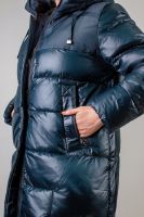 Зимняя удлиненная куртка с капюшоном арт. 221 c высоким теплым воротником стойкой переходящей в капюшон – идеальное решение для холодного сезона, сочетающее в себе стиль, комфорт и защиту от непогоды. Эта куртка создана, чтобы обеспечить надежное утепление и удобство в любых условиях, будь то городские прогулки или активный отдых на природе. Куртка выполнена из глянцевой ткани, благодаря чему вы надежно защищены от ветра, снега и дождя. Особое преимущество материала – грязь, шерсть и волосы к нему не прилипают, что значительно облегчает уход за изделием и сохраняет его привлекательный внешний вид даже после длительного ношения. Забудьте о постоянной чистке – ваша куртка будет выглядеть безупречно даже после прогулок по городу или похода в лес. Конструкция куртки предусматривает удобную двухстороннюю молнию с защитной планкой, что позволяет быстро регулировать вентиляцию и удобно застегиваться. Удлиненный фасон надежно прикрывает бедра, создавая дополнительный слой тепла, а горизонтальная стежка по всей поверхности куртки обеспечивает равномерное распределение наполнителя без излишнего объема – утепление здесь продумано до мелочей, комфортно и не «перегружает» силуэт. Капюшон на завязках, который можно легко подстроить под индивидуальные предпочтения и защититься от ветра. Капюшон и кокетка выполнены из матовой текстурной ткани, контрастирующей с основной глянцевой поверхностью куртки, что создает визуальный акцент и добавляет стиля. Практичность модели поддерживается благодаря двум вместительным боковым карманам, закрывающимся на кнопки – в них удобно хранить мелочи, которые всегда должны быть под рукой. Внутренний карман в подкладке позволяет хранить ценные вещи в безопасности и тепле, что особенно важно в холодную погоду. Эта зимняя куртка – отличный выбор для тех, кто ценит качество, комфорт и продуманный дизайн. Она отлично впишется в любой гардероб, сочетая актуальный современный стиль с функциональностью и долговечностью. Независимо от погодных условий, вы будете чувствовать себя тепло, уютно и стильно.