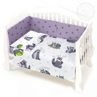 В состав комплекта (11 предметов) входят: - простынь универсальная на резинке 120 x 60 см – 1 штука; - подушка 40x60 c декоративным кантом по всему периметру. Наполнитель – термофайбер плотностью 200 гр/м2 – 1 шт; - наволочка стандартная 40 x 60 см с клапаном 1 штука; - пододеяльник 110 x 90 см 1 штука; - бортик 33 x 60 см. В комплекте 6 штук на завязочках, что позволяет использовать бортик по всему периметру кроватки (360 см.). На одном бортике наличие 3-х карманов для удобства родителей. - одеяльце 110x90 см в количестве 1 шт. Наполнитель – термоскрепленное волокно бамбука. Плотность наполнителя 150 г/м2. Особенными преимуществами комплекта в кроватку является компактный размер – можно с легкостью брать любимый комплект с собой в путешествие или в гости. Засыпая в кроватке, застеленной нежным, красивым и стильным комплектом белья от ТМ Артпостелька малыш погрузится в самые сладкие сказочные сны.