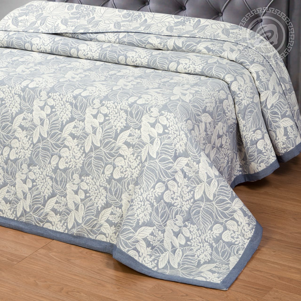В городской суете нет времени на отдых. А порой так хочется выехать за город и насладиться тишиной. Поэтому покрывало на кровать с тематическим рисунком в виде цветущих растений и листьев – это подходящая альтернатива для отдыха за городом. В спальне всегда будет цвести роскошный сад, а сине-серые цвета изделия привнесут в интерьер нотки изысканности.