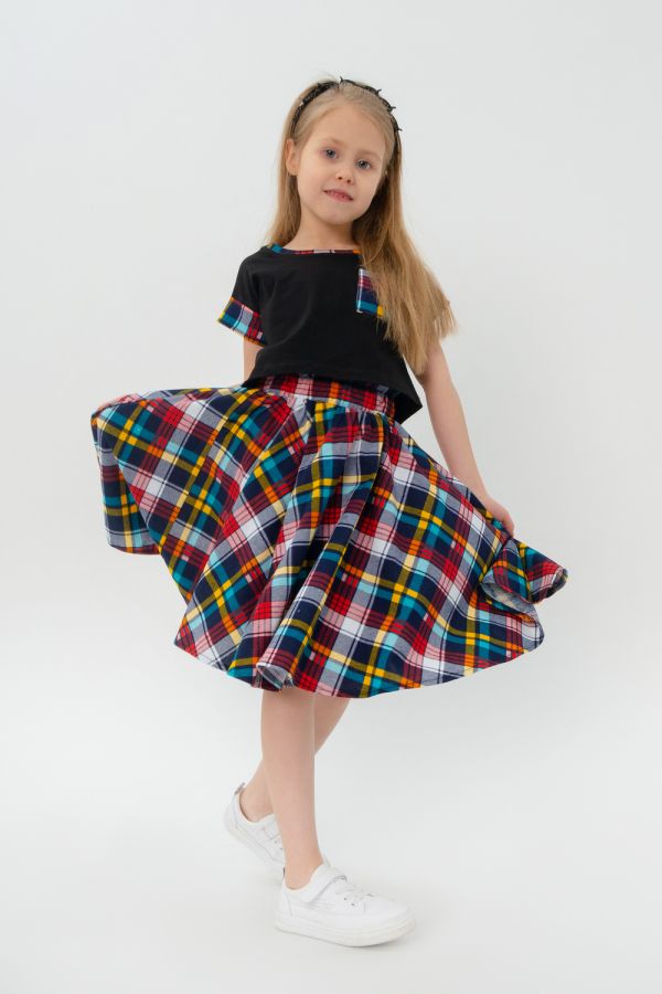 Юбка в клетку на британский манер. Выполнена из кулирки, что означает легкость и комфорт для ребенка. Незаменимая вещь в гардеробе молодой модницы.