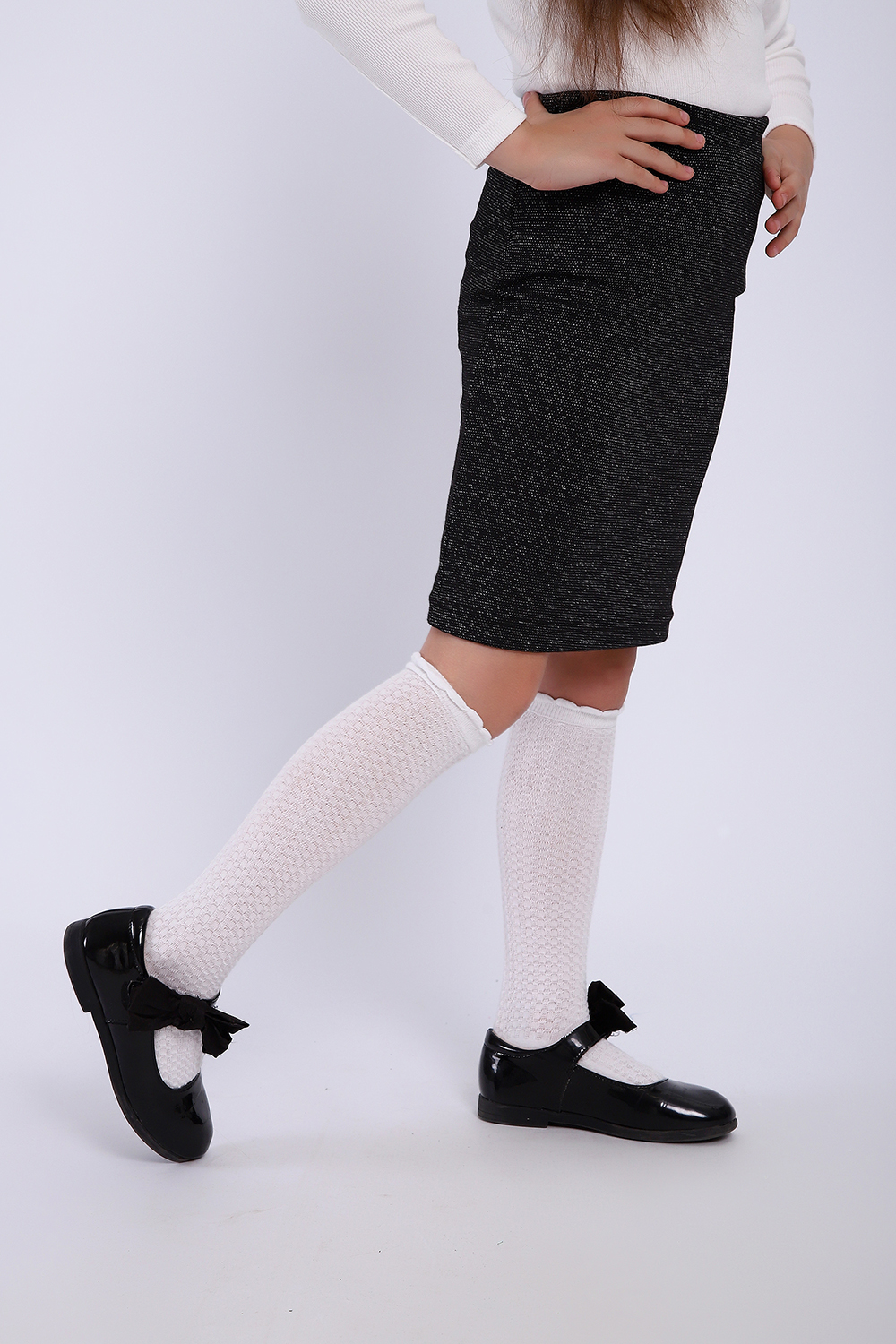Трикотажная юбка из мягкой ткани с блеском для маленьких модниц. Идеально подойдет для школы и детского сада. Крой прямой, заужен книзу, на эластичном поясе.