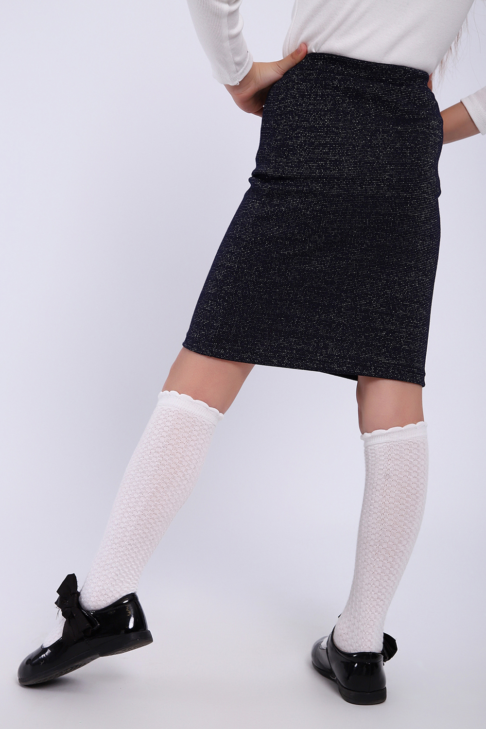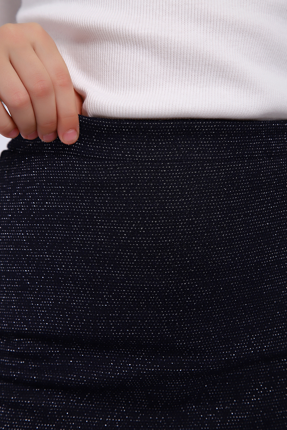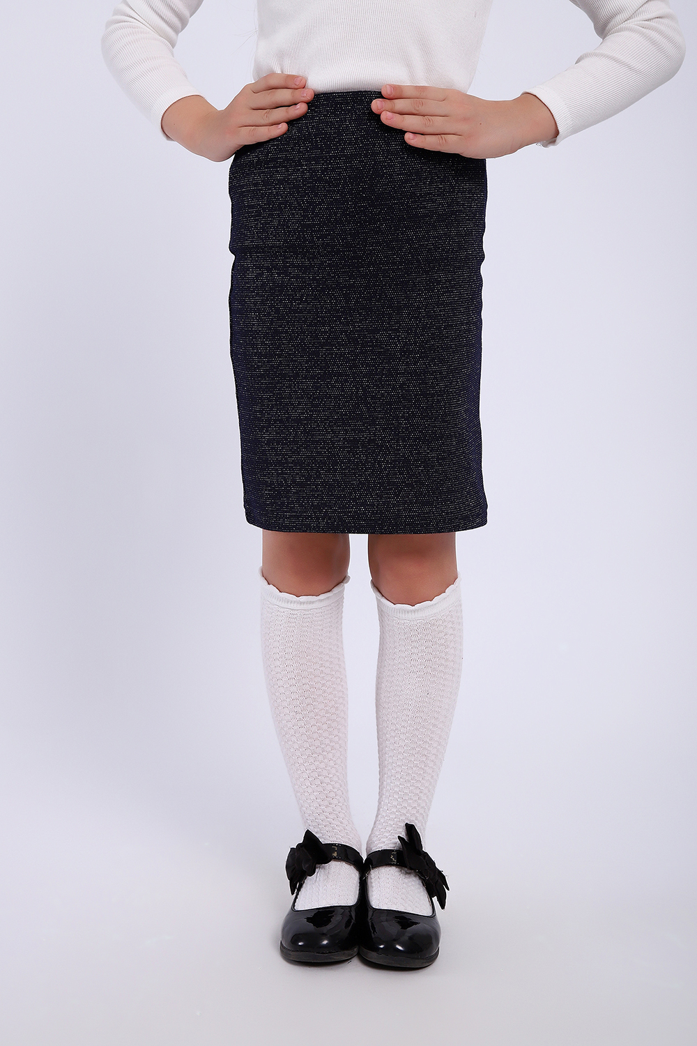 Трикотажная юбка из мягкой ткани с блеском для маленьких модниц. Идеально подойдет для школы и детского сада. Крой прямой, заужен книзу, на эластичном поясе.