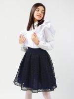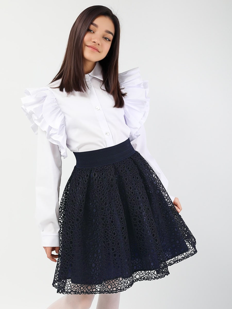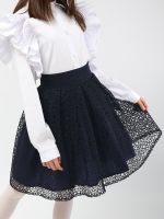 Юбка для девочки Соль&Перец. Эффектная юбка, с широким, эластичным поясом, сзади застёгивается на молнию золотистого цвета. Верхний слой - плотная сетка, с интересным плетением. Низ - лёгкий, атласный подклад. Прочный, износоустойчивый материал позволит надолго сохранить форму и привлекательный внешний вид изделия. Универсальный вариант как для школы, так и для торжественного мероприятия. Размер 128 (рост 122-128 см): длина изделия 42 см, обхват талии 50-54 см. Размер 134 (рост 128-134 см): длина изделия 44 см, обхват талии 54-56 см. Размер 140 (рост 134-140 см): длина изделия 46 см, обхват талии 56-60 см. Размер 146 (рост 140-146 см): длина изделия 50 см, обхват талии 60-64 см. Размер 152 (рост 146-152 см): длина изделия 52 см, обхват талии 64-68 см.